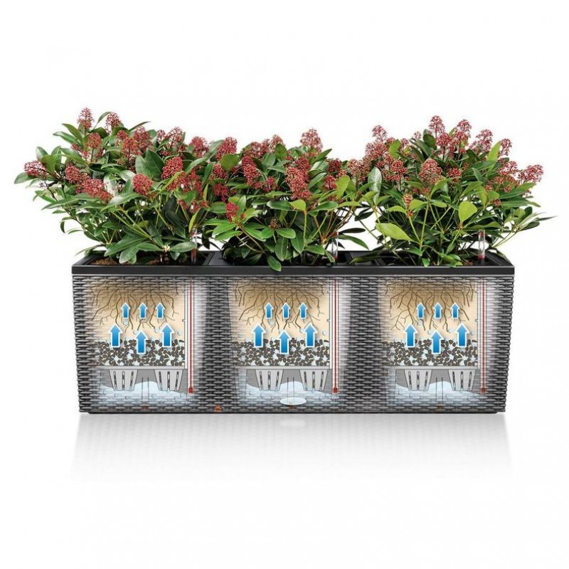 Опис Особливі переваги: Кашпо TRIO Cottage 30 та у розмірі 40 – відмінний варіант для вирощування кучерявих композицій, а також для зонування терас, громадських та приватних просторів. Виготовлено з якісного пластику, витримує великі перепади температур, непогоду та не вигоряє під УФ-променями. Рослини отримуватимуть достатній рівень вологи та поживних речовин завдяки системі автоматичного поливу. Спеціальний індикатор рівня води не дасть згаяти момент, коли необхідно долити води. У комплекті – зовнішній горщик, 3 внутрішні горщики, 3 індикатори рівня води, 3 пакети дренажу PON.