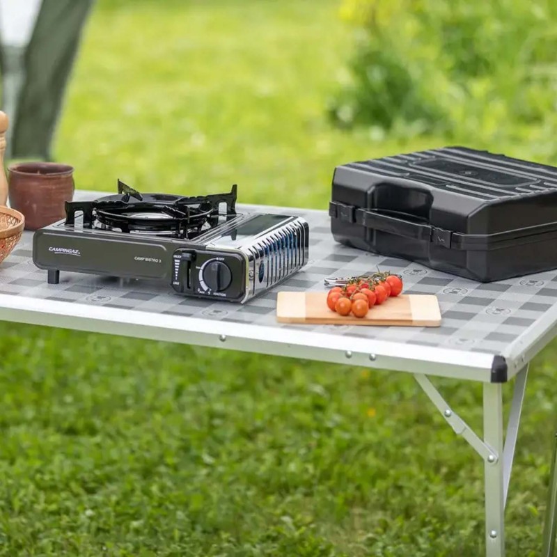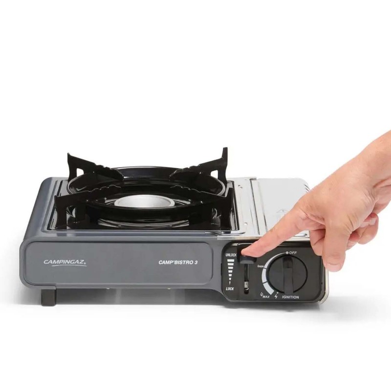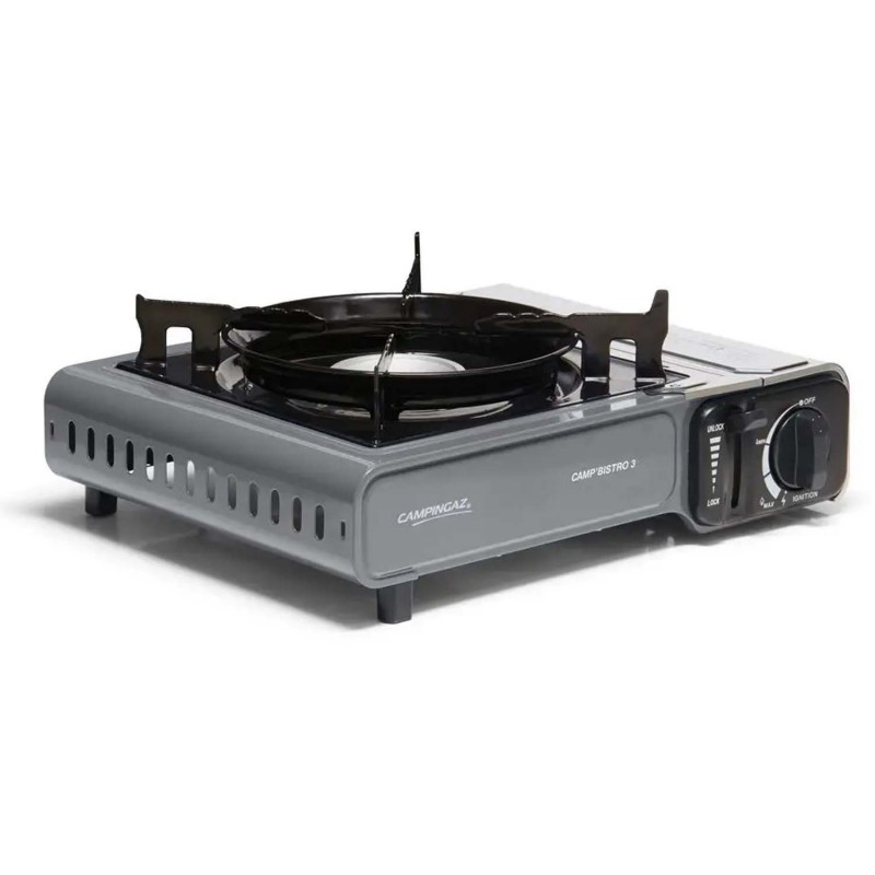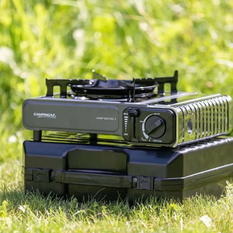 - Портативна газова плитка Campingaz Camp Bistro 3 виготовлена за стандартами безпеки та сертифікована для продажу в ЄС. У CAMP BISTRO 3 все спрямоване на процес розігріву або приготування їжі з максимальним комфортом та швидкістю. І найголовніше, з надійними системами газової безпеки для вашого спокою та впевненості у використанні.